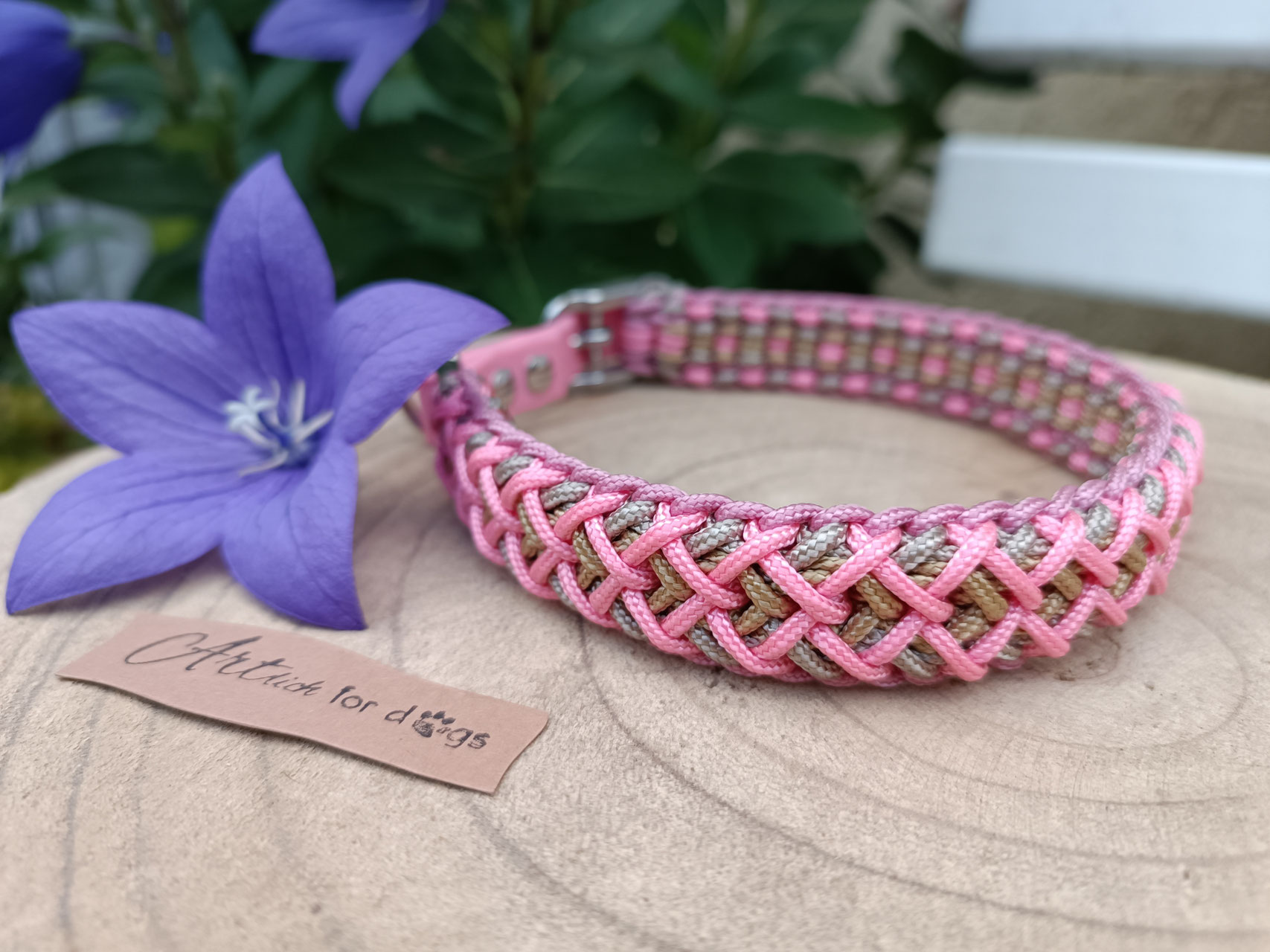 Dieses schöne filigrane Halsbandmodell wird mit vier Farben Paracord Typ 1 geknotet und einem verstellbaren 12 mm breiten Biothaneadapter versehen. Da das Halsband nur 1,5 cm breit und ca.7 mm dick ist, ist es sehr gut für kleine Hunderassen geeignet.
